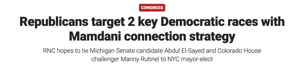 As Republicans eagerly look to pin the Democratic Party to New York City Mayor-elect Zohran Mamdani, two specific races look like early opportunities to do just that: the Michigan Senate primary and Colorado’s 8th Congressional District.
