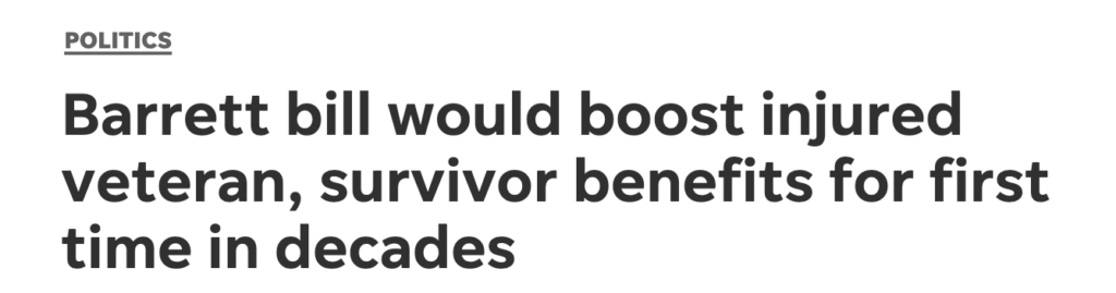 Barrett bill would boost injured veteran, survivor benefits for first time in decades