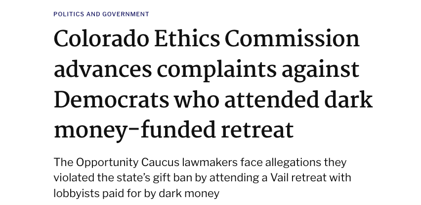 The Colorado Independent Ethics Commission advanced a complaint against out of touch Democrat Shannon Bird regarding a ritzy Vail weekend event with lobbyists funded by a dark money group.