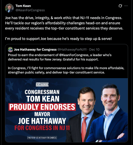 🚨 Joe Hathway Endorsed by New Jersey Fighter Tom Kean, Jr.