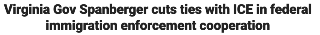 Retread loser Democrat Elaine Luria’s best friend Abigail Spanberger didn’t even wait a month to drop the mask and go full radical by ending Virginia’s cooperation with Immigration and Customs Enforcement.