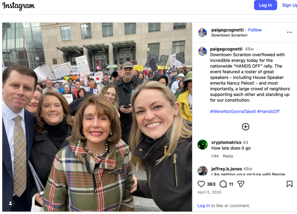 Cognetti has served as mayor since 2020 and in her 2019 campaign, she ran on fighting political corruption within the local Democratic apparatus, using the campaign slogan “Paige Against the Machine.” One of her top issues she’s using against Bresnahan is his many Wall Street transactions of last year, including the sale of Pennsylvania health care-related bonds and stock in Medicaid providers around the time he voted on Medicaid cuts. Bresnahan’s team has said his financial adviser did all the trading without his prior knowledge, but he has since suspended the activity.