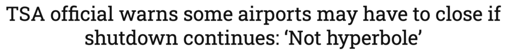 ‘Not hyperbole’ that Dems will force airports to shut down