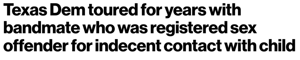 “Misogynistic Bobby Pulido’s pattern is clear: bad judgment, worse excuses, and zero accountability. Texans deserve someone who can be trusted to protect their families, not someone who spent years sharing the stage with a band of pedophiles and now wants Texans to believe he had no idea.” – NRCC Spokesman Christian Martinez