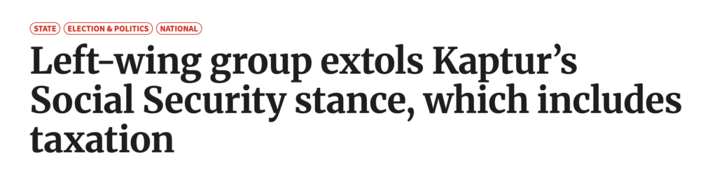 Left-wing group extols Kaptur’s Social Security stance, which includes taxation
