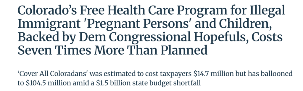 Colorado’s Free Health Care Program for Illegal Immigrant ‘Pregnant Persons’ and Children, Backed by Dem Congressional Hopefully, Costs Seven Times More Than Planned