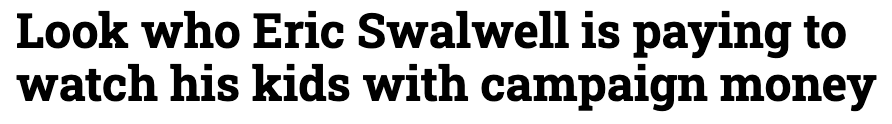 Swalwell is now taking a page straight from Gray’s handbook, padding the family payroll with donor dollars and hoping no one notices. His gubernatorial campaign shelled out $6,000 to his own wife for “childcare,” while Gray previously funneled nearly $40,000 in campaign funds to his family under conveniently vague labels like “consulting” and “civic donations.”