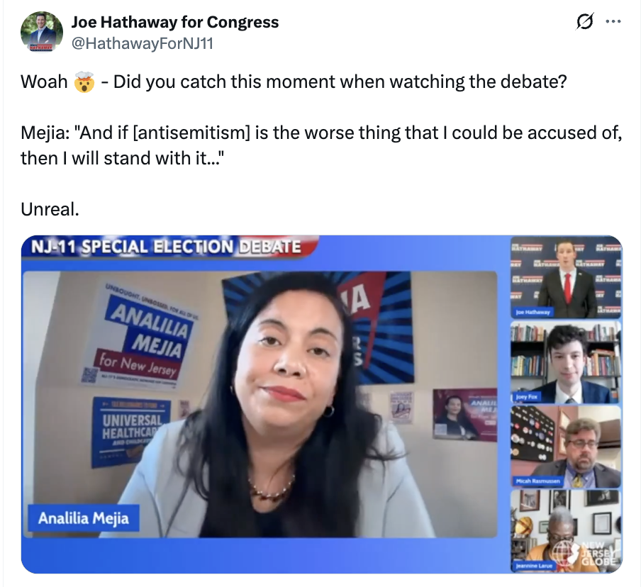“Radical socialist Analilia Mejia is making it crystal clear that she hates Israel and the Jewish people. Why is Rebecca Bennett unwilling to condemn this vile stance?” – NRCC Spokeswoman Maureen O’Toole