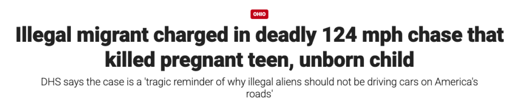 This week, an illegal immigrant led “Ohio deputies on a high-speed chase that ended in a crash killing a pregnant 17-year-old girl and her unborn child.”